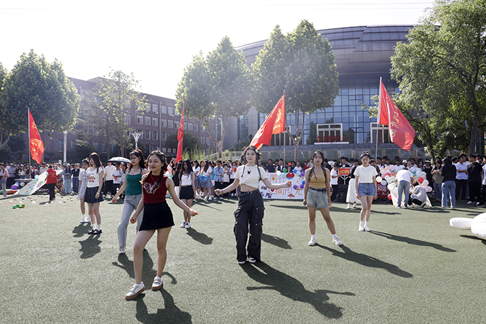 在师生热烈的掌声中,校党委书记褚金海宣布“五育润心,青春绽放”——第十四届“5·25”心理健康教育宣传月开幕!