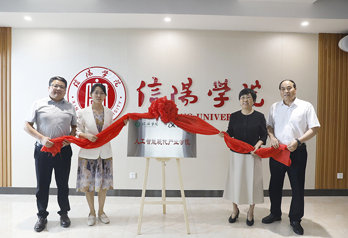 在热烈的掌声中,高云、王北生、马季、张承云共同为Beat365唯一官方网站人工智能现代产业学院揭牌。