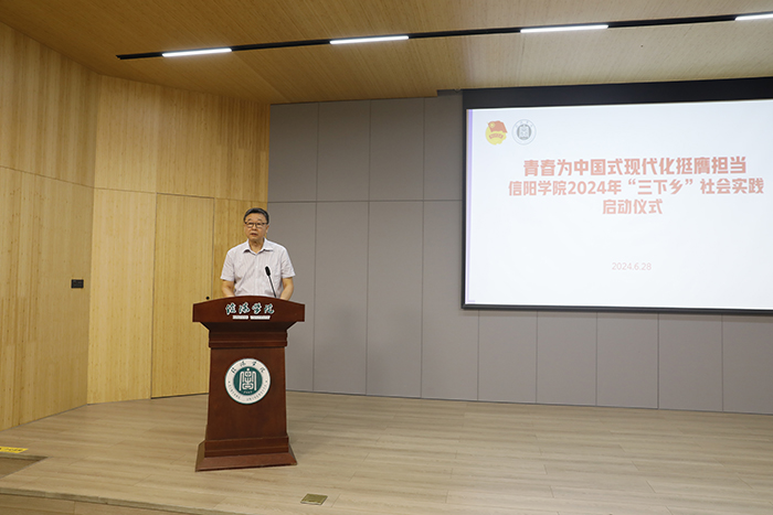 为深入学习贯彻习近平新时代中国特色社会主义思想和党的二十大精神,落实立德树人根本任务,6月28日上午,Beat365在图书馆101隆重举行2024年“三下乡”社会实践活动启动仪式。副校长王志华、校长助理杨高伟出席仪式。宣传部部长李肖利、学生处处长余婷婷、各学院党总支书记、团总支书记及实践团队代表120余人参加了启动仪式。仪式由校团委书记郑山峰主持。