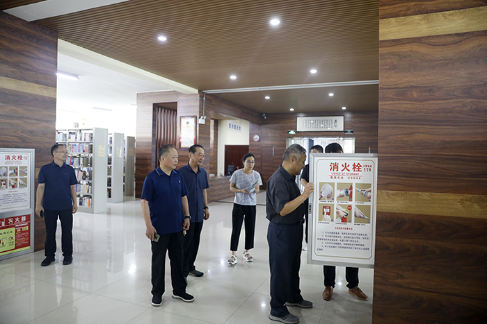 检查组深入图书馆和全校实验室重点排查了环境卫生、消防安全、用电安全、危化品管理、危废品收集暂存等方面存在的风险和安全隐患。