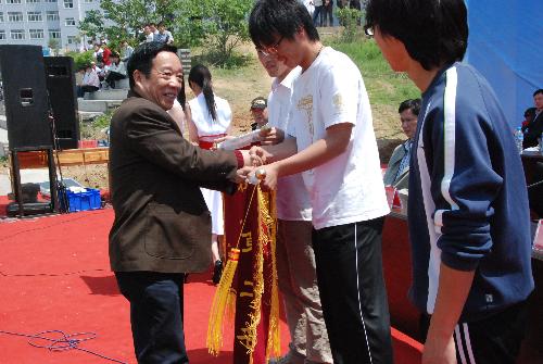 闭幕式上,学院办公室主任张柏平宣读了竞赛成绩。理工系、数学与计算机科学系、艺术与体育系荣获团体总分前三名;外语系、理工系、中文系荣获广播操表演赛前三名。学工部副部长、团委书记李明宣读了本届运动会精神文明单位、优秀组织奖、优秀啦啦队和优秀运动员、优秀裁判员名单。数学与计算机科学系荣获精神文明单位,理工系荣获优秀组织奖,外语系、艺术与体育系荣获优秀啦啦队;巩玉洁等30名学生荣获“优秀运动员”,王瑞杰等30名学生荣获“优秀裁判员”。在欢快的乐曲声中,院领导为获奖单位和个人颁了奖。