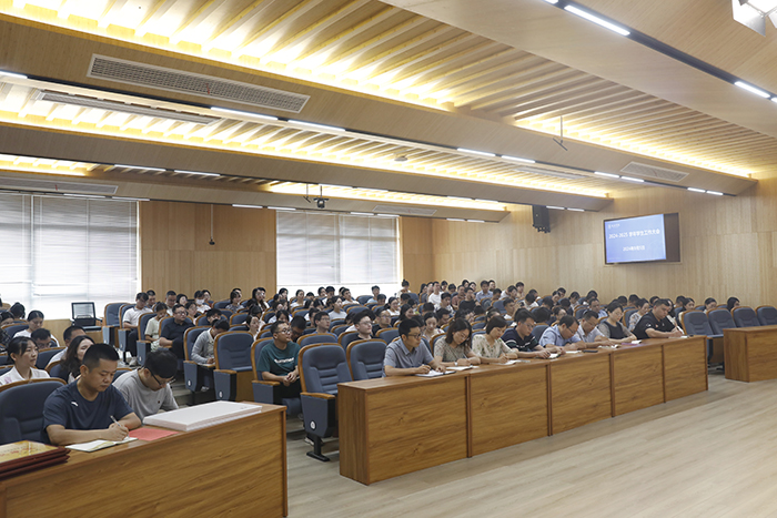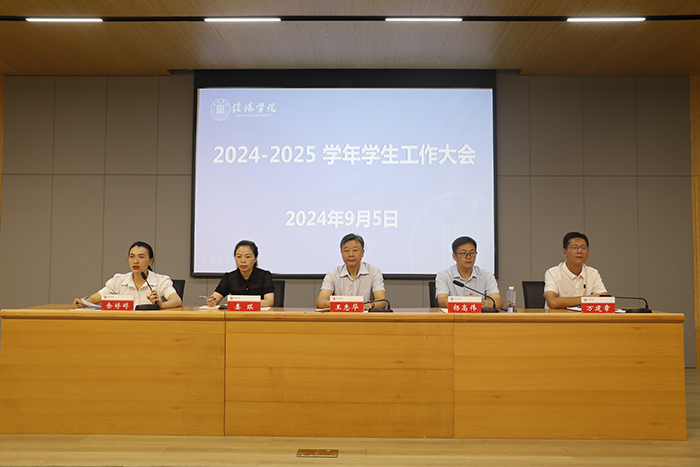 王志华在讲话中充分肯定了学工队伍在完成学校重大任务和日常育人工作中的辛苦付出和重要贡献。他就新学年学生工作提出要求。第一,要进一步提高对学生工作重要性的认识,激发内在动力,提升做好学生工作的积极性和主动性。他指出学校的事业发展、学生的成长成才和学生工作的开展密不可分。全体学工人要牢牢把握高校学生工作的育人属性,提高工作热情,以良好的工作状态完成学年的工作任务。第二,努力打造并形成争先创优的工作局面和工作氛围。一要提高工作站位,整体规划考量新学年学生工作,立目标,理思路,保质量,不断追求进步、追求提升、追求效果、开拓创新。二要加强团队建设,打造一支稳定、团结、富有活力和战斗力的学工团队。以辅导员素质能力大赛和辅导员培训为抓手,建立健全激励机制和考评机制,不断提高辅导员队伍的整体素质和综合能力。三要树立争先进做典型的意识,立标杆,树示范,将压力化作前进动力,努力将工作做实、做优、做强、做出彩。第三,筑牢安全底线,共同构筑平安校园。校园安全重于泰山,全体教职工应肩负起校园安全责任,将一岗双责落实到位。要深入开展形式多样的安全教育活动,加强安全教育,强化安全意识。强调要持续做好涉学生安全摸排工作,建立网格化管理等长效工作机制,掌握学生安全工作主动权。第四,持续加强学生心理健康教育工作,掌握基础信息,完善工作体系,创新工作方法,发挥心理健康教育辅导的重要作用。他寄语全体学工人,坚持以生为本的工作理念,牢固树立以学生为中心,一切为了学生的工作意识。处理好服务、帮扶和管理、教育之间的关系。同时,要加强理论学习、总结先进经验、主动磨炼自身、不断锤炼本领、实现自我超越,为学校学生工作高质量发展贡献力量。