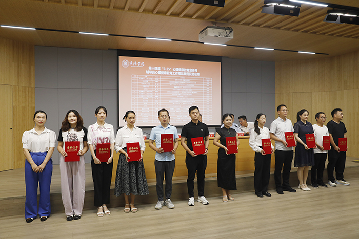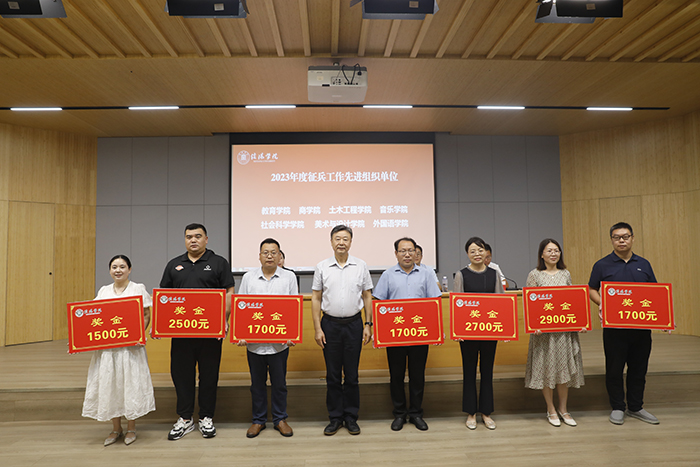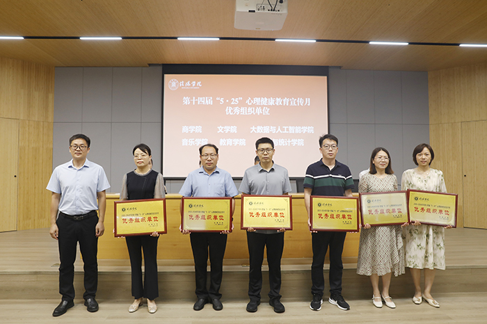 王志华、杨高伟、余婷婷为第十四届“5·25”心理健康教育月先进集体、先进个人和2023年度征兵工作先进单位颁奖。大数据与人工智能学院李书林等11位辅导员作为代表领取了辅导员心理健康教育工作精品案例奖;商学院、文学院、大数据与人工智能学院、音乐学院、教育学院、数学与统计学院荣获“5·25”心理健康教育月先进集体;教育学院、商学院、土木工程学院、社会科学学院、音乐学院、美术与设计学院、外国语学院荣获2023年度征兵工作先进组织单位。