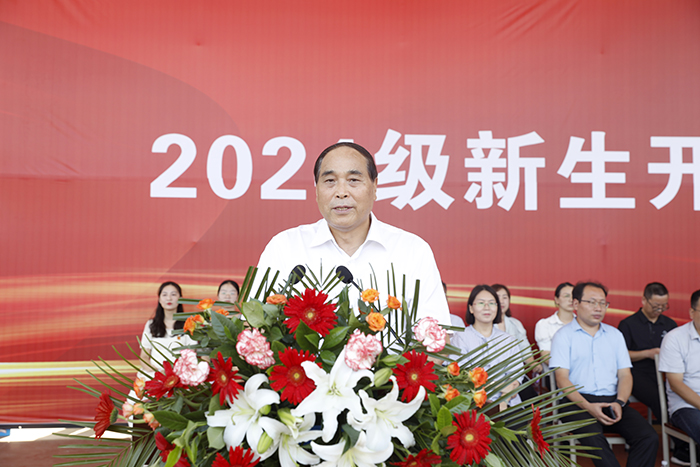 9月10日,正值全国第40个教师节,学校在浉河校区东田径场隆重举行2024级新生开学典礼暨军训动员大会。理事长高云,校长王北生,副校长王志华,校长助理高雅、杨高伟、张永志等在校校领导出席会议。各学院院长、书记,各职能部门负责人和2024级新生参加了会议。王志华主持了会议。
