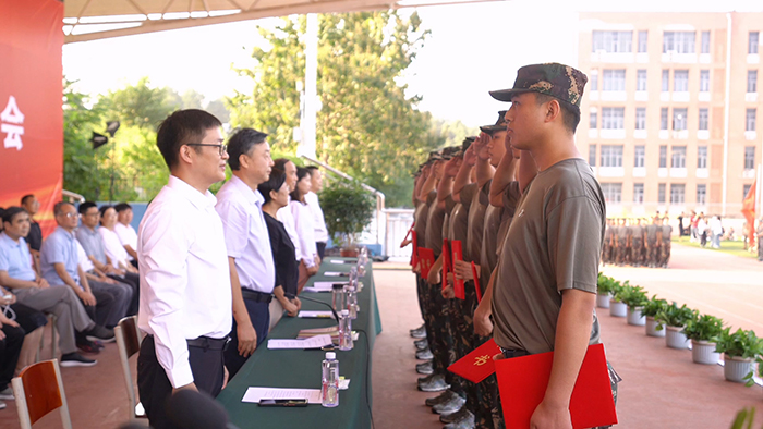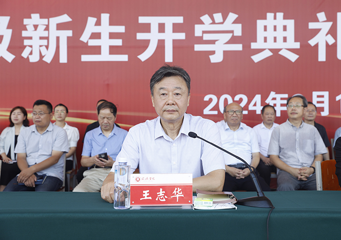 王志华在主持大会时说,2024级新同学们正身处以中国式现代化推进中华民族伟大复兴的伟大时代,大学是梦想的起航之地,也是人生中最宝贵的青春时光。请同学们珍惜这段美好时光,学会独立思考,不断提升思想境界,拓展生命的深度、广度和温度,成为有思想、有见解的新时代大学生。军训作为大家入学后的“第一课”,希望大家在军训教官的指导下,能够扎实完成各项训练任务,在训练中锻炼自己吃苦耐劳、顽强拼搏的意志品格,在训练中增强居安思危、常备不懈的国防意识,在训练中不断强化建设和保卫祖国的责任义务。习近平总书记指出,新时代青年要勇做走在时代前列的奋进者、开拓者、奉献者。希望同学们发扬“锐意进取、追求卓越”的信院精神,历练“爱国诚信、朴实尚学”的大气品质,塑造“笃学敦行、自强不息”的高尚人格,为实现中华民族伟大复兴的中国梦贡献自己的青春力量。