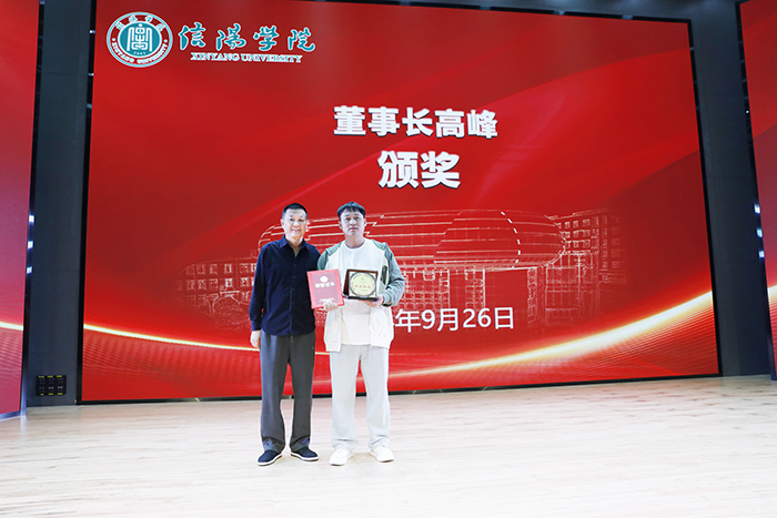 在热烈的掌声中,高峰为陈帅先颁发“杰出校友”证书、奖牌。
