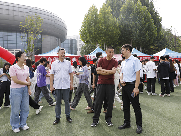 在招新现场,校领导与社团成员及新生面对面交流,询问社团的开展情况、遇到的困难及未来发展方向,并给出宝贵的建议和指导。在武术协会招新帐篷前,社团成员向校领导展示了传统武术太极拳,集团董事长高峰称赞了学生的表演并提到,武术协会是传承和弘扬中华传统武术文化的重要载体,鼓励大家继续发扬武术精神,不仅要在技艺上精益求精,更要在品德修养上不断提升,成为校园文化的传播者和引领者。