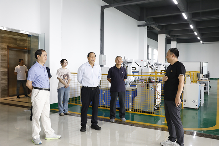 王北生、王强一行走访了工业机器人实训中心和智能制造基础实验室,实地调研了实验室的工作环境,深入了解实验室的仪器设备使用、企业导师授课、学生实习实训等情况,并与企业导师热情交谈。