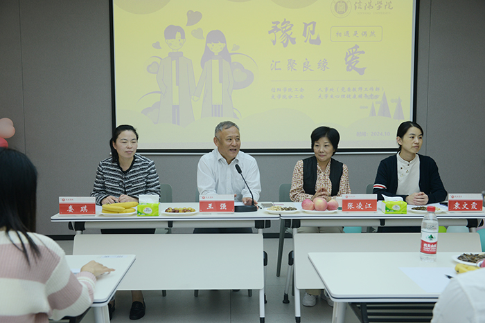 为认真贯彻党的二十届三中全会精神及全国教育大会精神,深入落实习近平总书记关于教育的重要论述,把“尊师惠师”举措落到实处,满足单身青年教师交友需要,10月15日下午,校工会联合教师工作部、大学生心理健康辅导中心、文学院分工会在南湖校区406会议室开展了“会聚良缘❤豫见”尊师惠师青年教师联谊活动。副校长、校工会主席王强出席了活动。党办、校工会女工委员会、教师工作部、文学院等相关单位负责人以及80余名青年教师参加了此次活动。