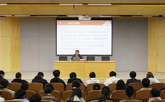 开班典礼结束后,杨高伟进行了首场辅导报告。报告围绕《学习党史 对照条件 争做合格共产党员》展开,内容涵盖中国共产党历史、党员条件以及当代青年如何成为合格党员等三大方面。从党诞生之初的思想、阶级、组织基础讲起,详细阐述了党的一大宣告成立,到开天辟地、完成救国大业的新民主主义革命时期,改天换地的社会主义革命和建设时期,翻天覆地的改革开放和社会主义现代化建设新时期,直至惊天动地的中国特色社会主义新时代的百年光辉历程。报告紧密结合当代大学生的学习生活实际,生动诠释了共产党员条件的具体内涵,教育引导党员发展对象坚定争取早日成为一名光荣的共产党员的信念与决心,把实现共产主义的远大理想与自身学习、生活的实际紧密结合起来,为学校的发展和社会的进步注入新的活力,努力在实现中华民族伟大复兴的中国梦的生动实践中放飞青春梦想。