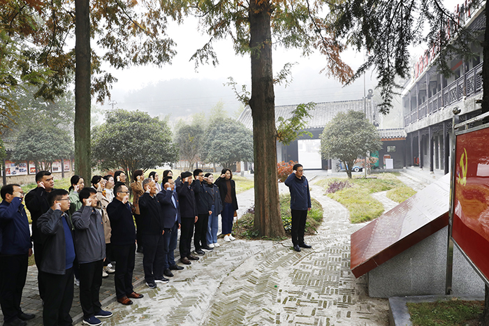 纪念馆前,在杨高伟的带领下,大家庄严地举起右拳,重温入党誓词,回忆入党初心,激发奋斗之志。