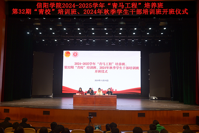 为深入学习贯彻习近平新时代中国特色社会主义思想和党的二十大及二十届二中、三中全会精神,不断提升青年学生政治理论素养,11月19日下午,学校举行2024—2025学年“青马工程”培养班、第三十二期“青校”培训班、2024年秋季学生干部培训班开班仪式。校纪委书记、校长助理杨高伟出席,党群部门负责人,各学院党总支书记、团总支书记和学员代表在主会场音乐厅参加,其余学员在分会场参加。党委办公室主任娄琪主持了开班仪式。