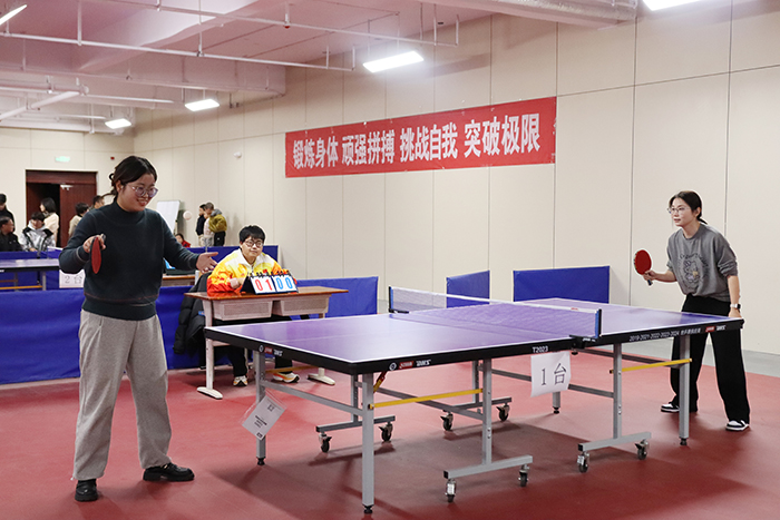 本届比赛教工组设有混合团体、男单、女单三个项目,学生组设有男子团体、女子团体、男单、女单四个项目,共有14组教工队伍和11组学生队伍参加团体赛,260余名选手角逐男单女单的比赛。比赛不仅是对参赛选手技术和策略的考验,更是一场智慧与勇气的较量。赛场上,各位选手精神抖擞,或精准发球或巧妙接球,让每一个回合都充满了悬念和惊喜,赢得现场观众的阵阵喝彩。经过数轮激烈的比拼,文学院、土木工程学院学院分别获教工组及学生组团体赛冠军,商学院获得优秀组织奖,社会科学学院、土木工程学院获得体育道德风尚奖。
