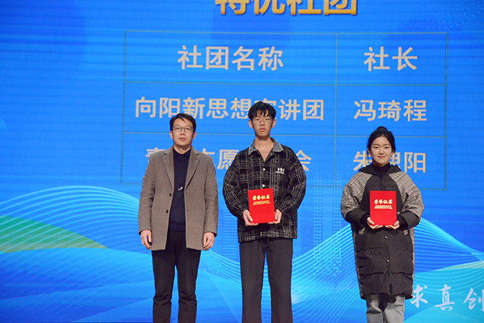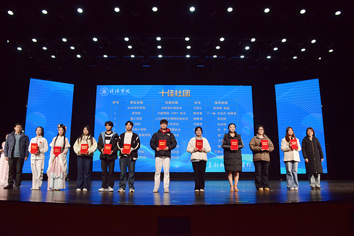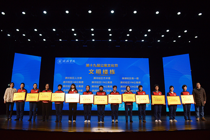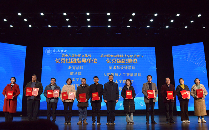 晚会期间,副校长王志华为先进集体颁奖。美术与设计学院、音乐学院、土木工程学院、大数据与人工智能学院、文学院荣获大学生科技文化艺术节“优秀组织单位”;社会科学学院、教育学院、外国语学院、数学与统计学院、商学院、理工学院荣获社团文化节“优秀社团指导单位”;土木工程学院、社会科学学院、教育学院荣获公寓文化节“优秀组织单位”;商学院、美术与设计学院、大数据与人工智能学院、理工学院荣获公寓文化节“文明集体”;文学院、外国语学院、数学与统计学院、音乐学院荣获公寓文化节“劳卫先进集体”。有关学院党总支书记李赟、刘颖方、郝昊、郭二军、徐远东、胡志国、高昌慧分别为特优社团、十佳社团、优雅宿舍获奖代表以及文明楼栋颁奖。