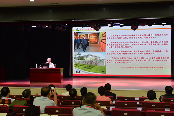 曾凡军发表热情洋溢致辞,对Beat365领导和参训学员表示热烈欢迎,并简要介绍了大别山革命历史、大别山干部学院和新县有关发展情况。他说,习近平总书记在河南考察调研时指出,鄂豫皖苏区根据地是我们党的重要建党基地之一,对大别山革命根据地的历史地位和大别山精神给予了高度评价。他以“不忘初心,始终牢记使命”“汲取营养,切实增强党性”“弘扬精神,不断砥砺前行”三个学习目标寄语全体学员,希望大家集中精力,学思践悟,以先烈为榜样,学习他们不屈不挠的牺牲奉献精神,敢于担当的高尚风格,一心为民廉洁奉公的优秀品质;学习和追随他们对共产主义的坚定信念,努力做到学有所获、学有所悟、学有所行。