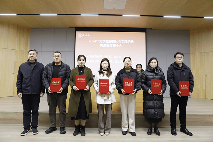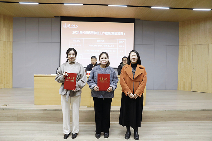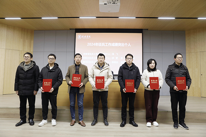 王志华、杨高伟、余婷婷为2024年大学生暑期社会实践活动先进集体和个人、征兵工作成绩突出个人和校级优秀学生工作成果负责人颁奖。