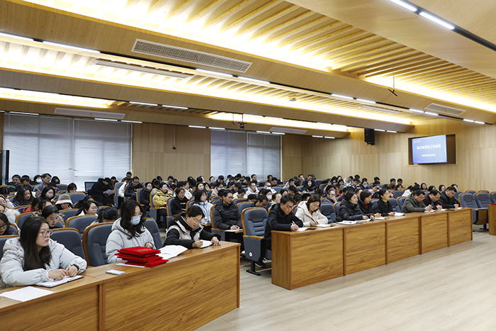 余婷婷对2024年学生工作取得的成绩以“新突破”和“新变化”为关键词进行了回顾,并就新学期重点学团工作进行安排:第一,要警钟长鸣,常抓不懈安全管理。第二,要高度重视学生心理健康。第三,要扎实做好人民武装工作。第四,要激励辅导员专业成长与职业素养提升,为学生工作提供更加坚实的保障。