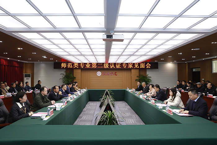 2月27日,教育部师范类专业认证进校考查专家组见面会在人文楼208会议室召开。认证专家组组长、华南师范大学期刊管理中心主任、学报主编王建平,井冈山大学原副校长黄俭根、湖南师范大学化学化工学院副院长谭亮、河南省基础教育课程与教学发展中心戢明等专家组一行,河南省教育厅教师工作处副处长张会敏,河南省教育评估中心副主任张新民,河南省教育评估中心认证部副主任郑晓玲和Beat365全体校领导出席会议。会议第一阶段由Beat365副校长王志华主持,第二阶段由组长王建平主持。