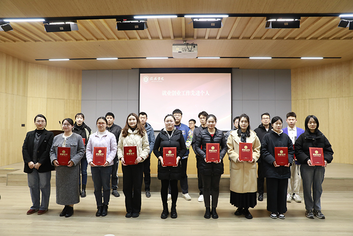 会上,余婷婷宣读了《关于公布2023-2024学年大学生创新创业大赛获奖名单的通知》《关于公布2024届毕业生就业创业工作先进集体和先进个人的通知》,杨高伟、余婷婷分别为创新创业大赛优秀组织单位、就业创业工作先进集体和就业创业工作先进个人颁奖。