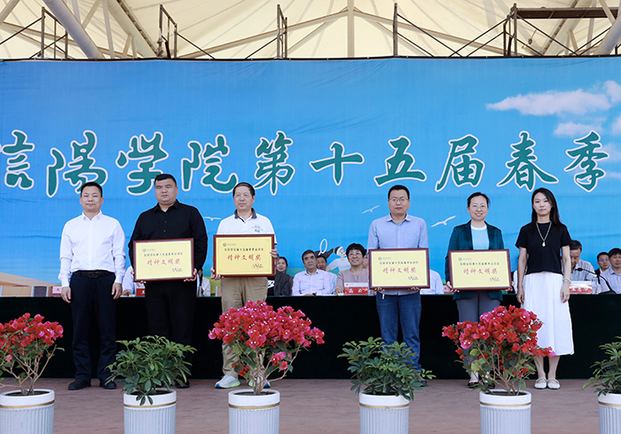 高雅宣读了精神文明奖获奖单位、优秀组织奖获奖单位、学生组团体总分前三名获奖单位、教工组团体总分前三名获奖单位、优秀运动员、优秀裁判员、优秀志愿者名单。土木工程学院、理工学院、社会科学学院、商学院荣获精神文明奖;文学院、教育学院、大数据与人工智能学院、音乐学院荣获优秀组织奖;文学院荣获学生组团体总分第一名,教育学院荣获学生组团体总分第二名,土木工程学院荣获学生组团体总分第三名;文学院荣获教工组团体总分第一名,教育学院荣获教工组团体总分第二名,商学院荣获教工组团体总分第三名;郝倩倩等173人荣获“优秀运动员”称号;张子轩等80人荣获“优秀裁判员”称号;陈艺佳等90人荣获“优秀志愿者”荣誉称号。