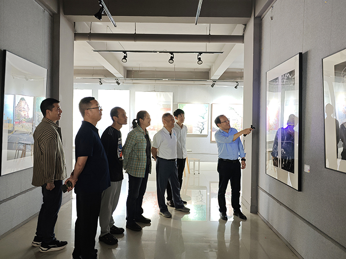 邹东升教授在致辞中高度赞扬了学院教学成果和毕业生的创作水平,希望两校进一步加强合作,深挖信阳优秀文化资源,构建具有地域特色的美育工作共同体,致力于讲好信阳故事、传播信阳声音,创作更多优秀作品,为推动信阳文化艺术繁荣发展贡献力量。