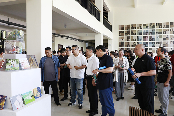 最后,王志华宣布毕业展正式开幕。在热烈的掌声中,与会领导嘉宾移步展厅参观展览。参观过程中,他们对展出作品给与了高度认可,纷纷为学生的创作点赞,不时与师生交流互动。