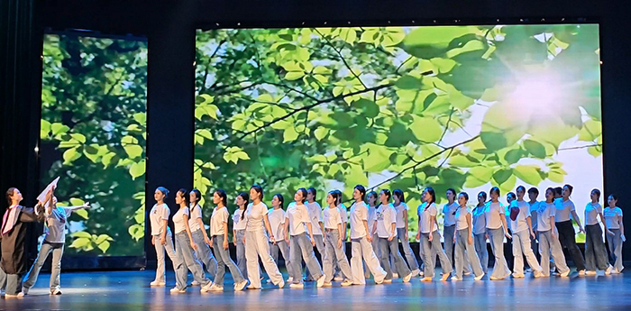晚会以治愈系混声合唱《世界赠予我的》温暖启幕,用歌声传递对生活的感恩。原创歌曲《我把心愿写成歌》用校园记忆串联起青春笑泪,《石榴花开》则以铃鼓伴舞展现民族团结的蓬勃生机。流行串烧《我的未来式》《爱你没差》《直到世界尽头》三曲联唱,用“由我做主”的宣言和“不散场”的约定诠释青春誓言。《渔歌子》以清丽歌声勾勒江南水墨,《努玛阿美》用钢琴演绎哈尼梯田的文明密码,《蝴蝶泉边》则以古筝模拟泉鸣蝶舞。舞蹈《醉春风》用足尖描绘春日柔情,《觉醒年代》用铿锵舞步再现青年觉醒的力量。红色经典《八月桂花遍地开》通过情景歌舞重现革命岁月,民歌联唱《茶妹子》《一朵茉莉花》则带观众漫步茶山品诗意。一首《纪念》细数教室晚霞与操场奔跑的身影。《思源》以深情旋律感恩母校栽培。晚会在充满活力的舞蹈《风起时,正青春》《再一次出发》中落下帷幕,为这场融合传统与现代、青春与传承的艺术盛宴画上圆满句点。整场晚会高潮不断、掌声热烈、情绪高涨,倾注了音乐学院师生爱党爱国爱校的深厚情怀,展示了师生雄厚的专业功底,受到学校领导和广大观众的充分肯定和热情点赞。