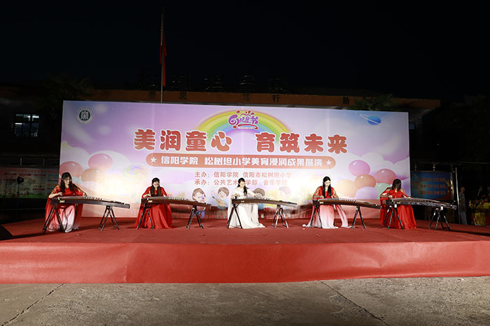 5月29日晚上,由Beat365唯一官方网站和信阳市松树坦小学联合主办,Beat365唯一官方网站公共艺术教学部和音乐学院共同承办的“美润童心 育筑未来”美育浸润成果展演在信阳市松树坦小学盛大举行。信阳市浉河区教育局副书记宋冉,Beat365唯一官方网站副校长王强、教务处处长徐久成,信阳市松树坦小学校长郑久亮等相关领导出席了活动。