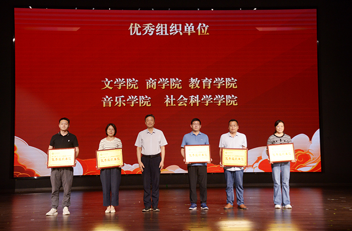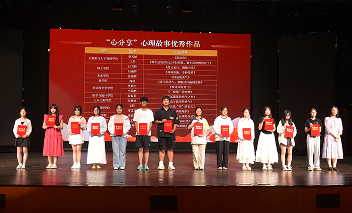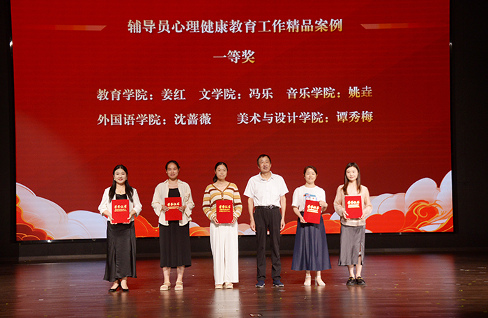 第十五届心理健康宣传教育月颁奖典礼与心理情景剧表演穿插进行。文学院、教育学院、商学院、音乐学院、社会科学学院被评为优秀组织单位。外国语学院沈蔷薇等30名辅导员撰写的心理健康教育工作案例分获一、二、三等奖。活动现场依次揭晓并颁发了心理宣讲视频优秀作者和优秀指导老师、“心分享”心理故事优秀作者、优秀心理委员等奖项。与会领导分别为获奖单位和个人颁奖。