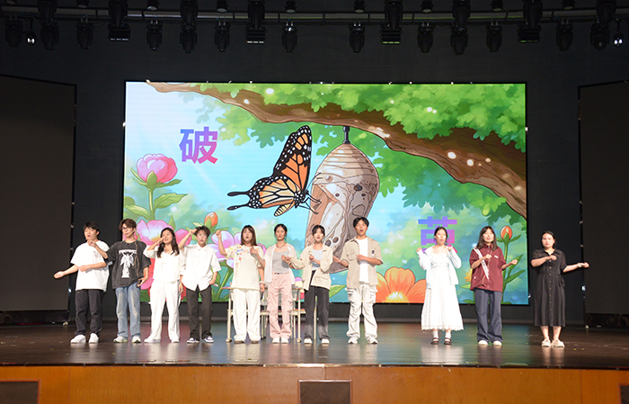 经过学院推荐和复赛,六个单位的作品进入决赛环节,首先是社会科学学院的作品《破茧》,该剧讲述了一颗年轻的心在自我认知觉醒与社会支持的双重滋养下,最终挣脱心灵束缚,完成积极蜕变的动人故事。文学院的《破冰行动》,展现了主人公突遭家庭变故,又面临人际交往困境,最终在朋辈互助的温暖中融化心灵坚冰,彼此扶持前行的心灵破冰之旅。大学生心理健康辅导中心的《独绽亦成春》则聚焦大学生人际关系,巧妙融入古典诗词意象,生动展现了主人公苏碧钰从人际迷茫走向自我觉醒的成长历程。教育学院作品《心境迷宫,与压力共舞》细腻刻画了主人公身陷多重压力困境——学业竞争、人际困惑、代际冲突,直观呈现了当代大学生在“内卷”与“躺平”间的心灵挣扎,探索了与压力共舞的心灵妙方。土木与工程学院作品《如果迷茫,请再往前走一走》,围绕毕业生求职的彷徨展开,通过多维场景的巧妙切换,全方位展现了青年学子面对职业选择与就业压力时的迷茫与抗争,发人深省。音乐学院的《寻心》讲述了主人公深陷学业重压、情感纠葛与家庭矛盾的重重围困,最终在辅导员悉心疏导与亲友温情关怀下,重拾勇气,积极面对困境,勇敢追寻内心光芒的励志故事。
