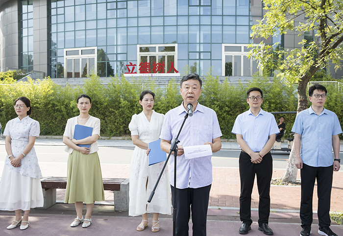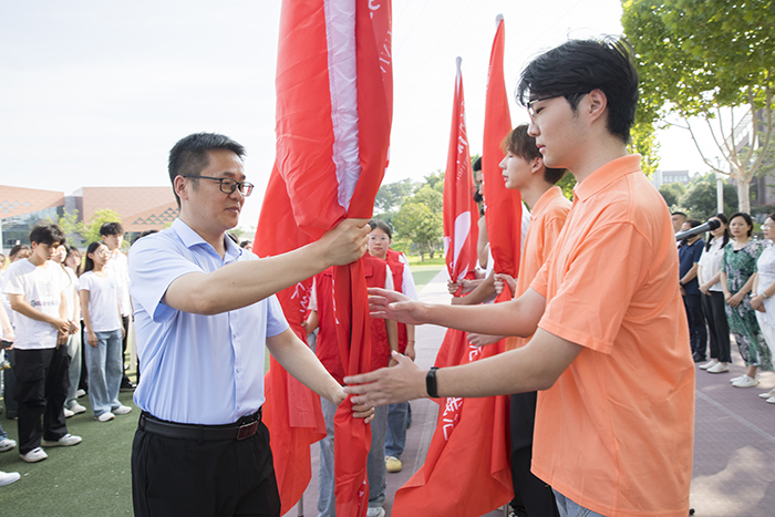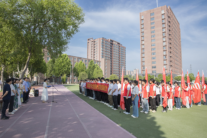 王志华发表讲话,他向精心指导学生实践的老师们致以敬意,并向即将出征的实践队员们表达良好祝愿。对于本次暑期社会实践,他提出三点期望:一是希望同学们坚定理想信念,厚植家国情怀,在暑期社会实践中磨炼意志,抛却“骄娇”二气,深入乡村基层,将个人融入国家社会之中;二是期望同学们努力躬身实践,做到知行合一,要发挥专业优势,将理论与实际操作相结合,面对实践中的问题与挑战,勇于探索创新;三是要求同学们牢记安全意识,各项目团队出发前做好安全预案,规划好行程,注意饮食、财产及生命安全,实践中团队成员团结互助,确保安全实践、满载而归。此外,他还要求各学院加强对实践团队的专业指导,选派经验丰富、责任心强的专业教师和辅导员随队跟踪,提供专业支持与心理关怀,确保活动安全、有序、高效开展。