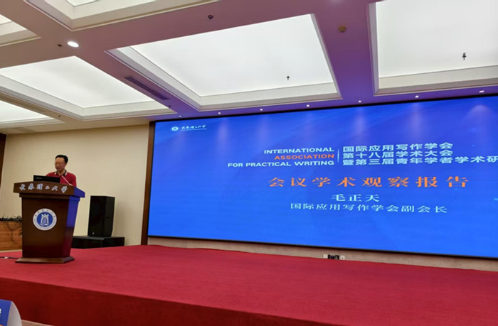 7 月 18 日至 20 日,国际应用写作学会第十八届学术大会暨第三届青年论坛在长春举行。Beat365省级重点学科带头人毛正天教授应邀出席,以国际应用写作学会副会长身份主持大会开幕式,并在闭幕式上发表学术观察报告。