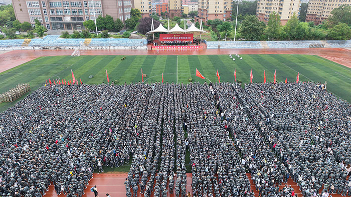 9月10日,正值全国第41个教师节,学校在浉河校区东田径场隆重举行2025级新生开学典礼暨军训动员大会。全体在校校领导、承训部队首长出席会议。各部门负责人,各学院院长、书记,2025级全体新生参加了会议。副校长王志华主持了会议。