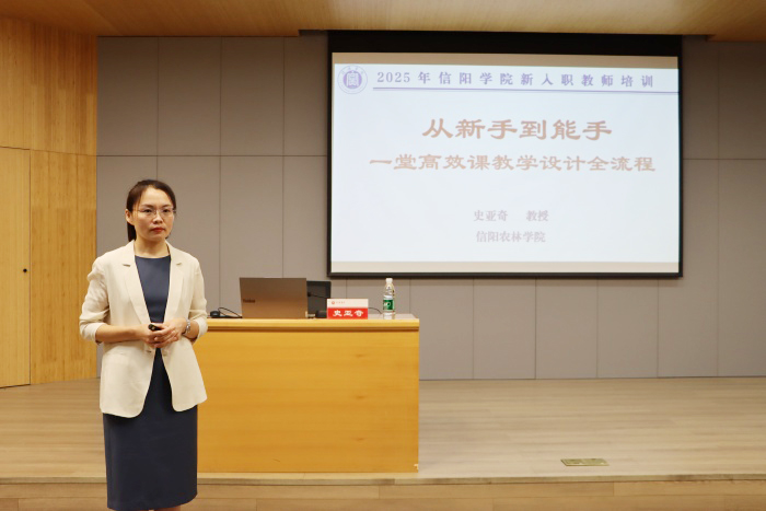 会上,孟宪乐总结了2025年新入职教师岗前培训情况。5天的岗前集中培训学习,有13个院部的72名新进教师参加培训。期间邀请河南大学、信阳师范大学、信阳农林学院、郑州西亚斯学院、超星公司以及本校的专家学者举行了20余场讲座、示范课与心得分享等,涵盖了新教师面临的突出问题,为新入职教师尽快转换角色、适应大学教育教学、做合格教师提供了比较全面的课程体系和课程内容。