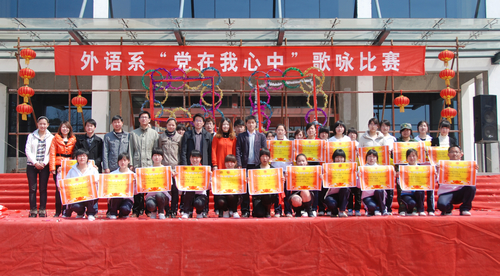 院党委委员、学工部副部长、团委书记李明,人事部部长助理李赟,外语系党总支副书记、主任助理张富庄,院教工二总支副书记、学工部秘书陈杰,院党委秘书万建章,团委秘书高昌慧,艺术系学工秘书陈金强,艺术系优秀青年教师杨辉,外语系行政秘书刘颖方,外语系团总支书记李肖利担任了本次比赛的评委。来自该系2009级、2010级的28个班级分别组队参加了比赛。