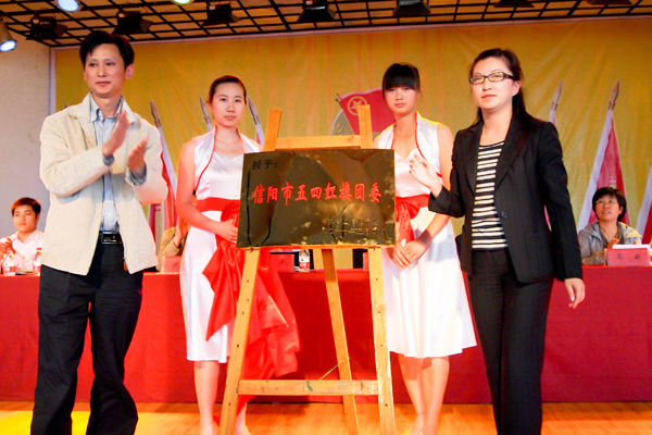 会议在雄壮的国歌声中拉开帷幕。会上,团市委学校部长陶丹和院党委书记祝军为我院荣获的信阳市“五四红旗团委”进行了揭牌;副院长王志华宣读了《信阳师范学院华锐学院2010—2011学年“先进团总支”、“先进班集体”、“三好学生”、“模范干部”、“优秀团员”表彰的决定》;党委委员、学工部副部长、团委书记李明宣读了《信阳师范学院华锐学院“助学政策 助我成长”征文比赛的表彰决定》;出席会议的领导为获奖集体和个人进行了颁奖;先进团总支代表和模范干部代表进行了发言。