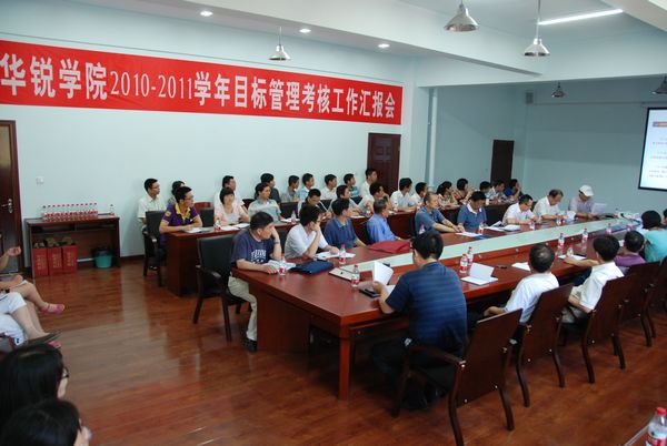 会上,各管理部门、教辅单位、教学单位负责人就本学年目标任务书完成情况作了汇报;与会人员对各管理部门和教辅单位目标任务书完成情况进行了测评。