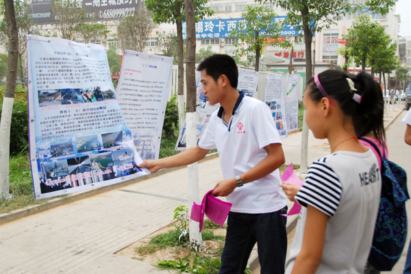 7月4日,为积极响应团省委关于开展2011年暑期大学生“三下乡”社会实践活动的文件精神,院团委组织的“十二五”政策宣讲团前往东方京城社区和体彩广场进行宣讲活动。