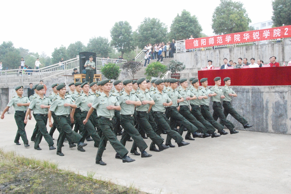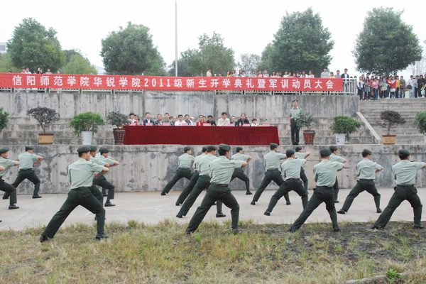 9月13日上午,我院2011级新生开学典礼暨军训动员大会在体育场举行。信阳师范学院华锐学院副董事长李俊、院长郑定豪,党委书记祝军,副院长王志华、王忠阁、高云,各单位负责同志及承训部队首长曹祥军中校出席大会。新生辅导员和2011级新生参加了会议。大会由王志华主持。