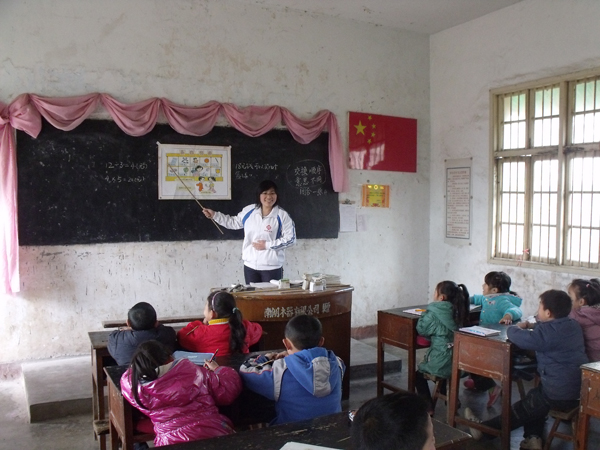3月16日上午,外语系十余名青年志愿者在该系志愿服务基地信阳市南湾二号桥小学进行义务支教,他们在课堂上为孩子们讲解文化知识,在课下和他们一起游戏玩耍并合影留念,和孩子们建立了深厚的感情,并受到该校领导一致好评。