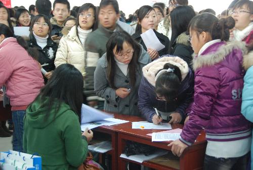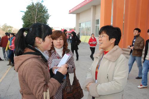 12月5日,由我院与信阳师范学院共同承办的河南省毕业生就业市场豫南地区分市场暨2010届毕业生双选周活动在逸夫楼大学生就业教育招聘大厅拉开了帷幕。