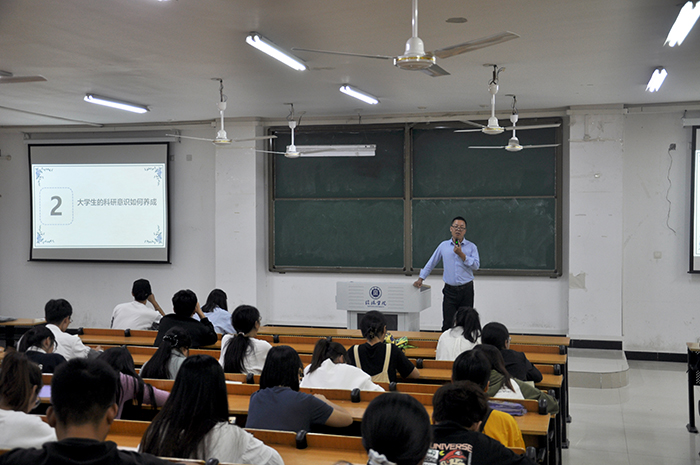 高永平表示,以培养学生具有理想信念、社会责任感、创新精神和实践能力为核心,培养造就高素质专门人才和拔尖创新人才,培养具有创新精神和实践能力的学生是现代大学教育的核心工作。他从自身出发,向学生们讲述了自己的求学和科研经历,从刚考入硕士,经历迷茫,再到探索阶段和转型阶段,使同学们感受到科研的重要性以及其严谨的科研态度。他鼓励同学们在科研道路上要端正自己的心态,多阅读和跟踪文献以及积极申请科研项目。他强调大学专业研究的优势与必要性,要尽早培养学生的创新兴趣与意识,扭转学生的惯性思维,使学生尽早步入探索科学和创新的实践轨道。