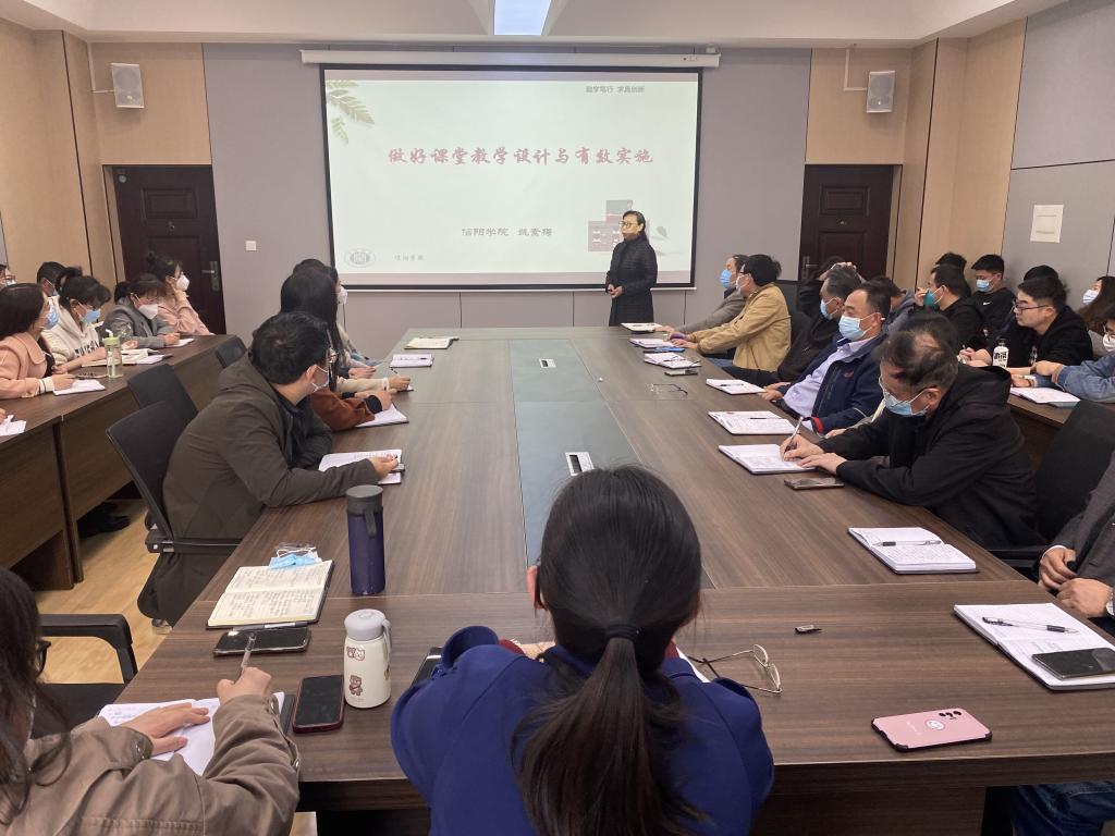 姚素梅从“根据您的教学经验,上好一节课,应设计好哪些课堂教学环节?”这个问题导入,围绕四个方面阐述如何做好课堂教学设计与有效实施。一是课堂教学设计环节。对理论课程课堂教学设计和实践类课程课堂教学设计进行讲解;二是课堂教学的有效实施。从有效导入新课、有效提问、有效课堂互动、教学方法有效运用、有效课堂联系、有效运用教学技能、有效课程思政、有效结课与布置作业等方面作了说明;三是课堂教学能力提升。建议青年教师要认真备课、反复练习、熟练内容,多听课、多交流、多请教、勤思考、学会评课,找出问题及时修正,逐步提高教学水平;四是课堂教学方式创新。介绍了课堂教学改什么、怎么改、怎么做、改革目标等。