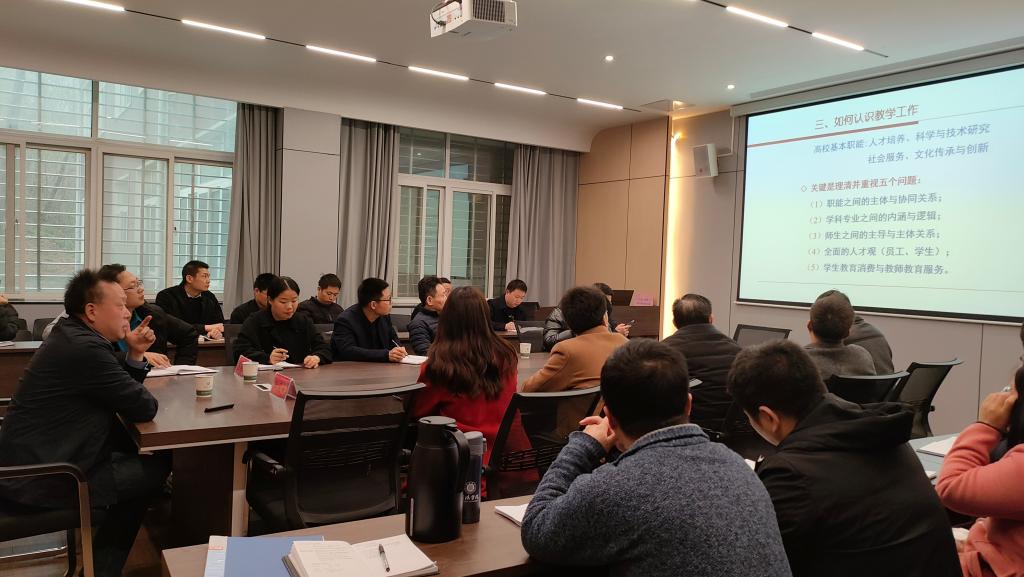白宪臣从我国高等教育基本形势、几个重要文件解读、如何认识教学工作、教学建设与目标实现、关于教育教学改革等五个方面阐述了新时代高校教师如何做好教学工作。他说,科研是做好教学的源泉,要结合教学组织者与管理者不同身份,合理确定教改项目方向,积极撰写科研及教研文章,强调做好教学与科研融合及科研成果的教学转化,并勉励大家要增强大局意识,牢记岗位职责,经常沟通交流,保持平静心态,形成自己的教学特色,不断提升教学科研水平,从而提高人才培养质量。讲座内容丰富,语言生动严谨,赢得老师们阵阵掌声。