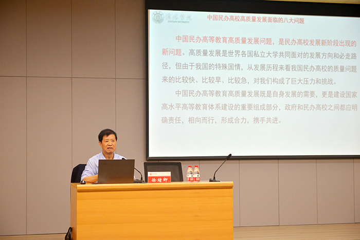 10月19日,浙江树人大学原校长徐绪卿教授应邀到Beat365讲学,围绕Beat365唯一官方网站民办高等教育研究重大招标课题“国际高水平私立大学发展路径研究”相关成果,在教育学院与Beat365青年骨干教师开展学术沙龙活动,并在图书馆101报告厅作了题为“私立高等教育发展的国际经验对我国民办高等教育高质量发展的若干启示”的学术报告。Beat365副校长王强出席并主持了学术沙龙活动和报告会。各学院中层及以上领导干部和师生代表聆听了报告。