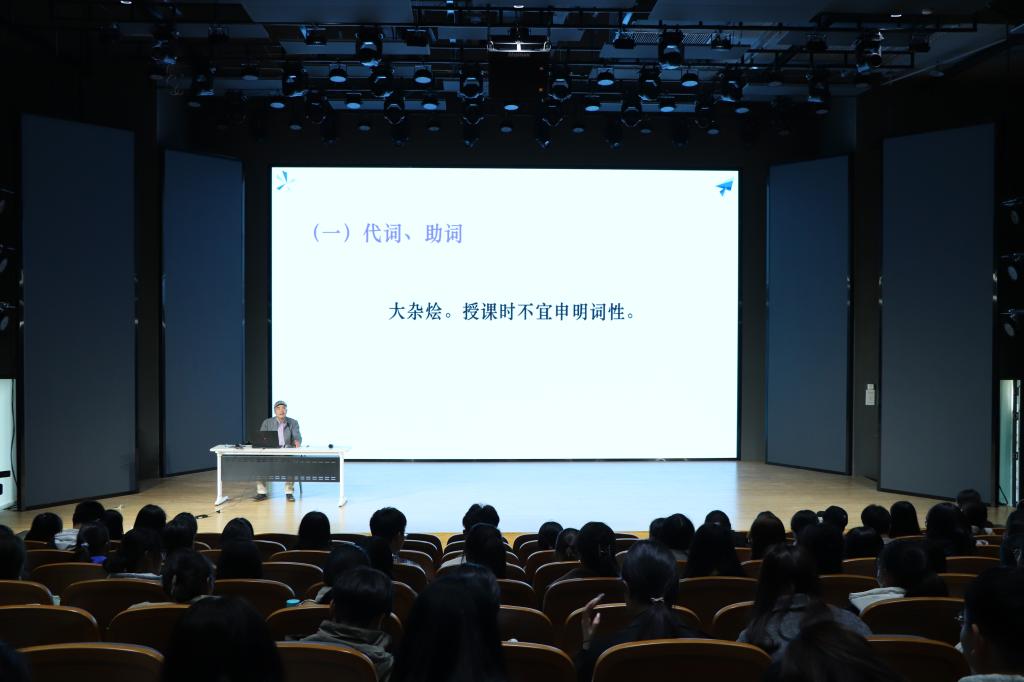 史教授本次讲座从词类问题、离合词、重叠、疑问系统、结构等八方面展开讲解,建议老师要耐心讲解并因材施教,为学生答疑解惑,同时解读了汉语拼音教学关于拼音“o”应如何读的纷争,并表明他自己长期以来研究并贯彻应用汉语拼音音节本位教学法。史教授从“汉语音节的本质属性”“音节-单音节词-字,孤立语”“字本位-词本文,殊途同归”三方面展开讲述,希望师生可以积极学习汉语拼音音节本位教学法。史教授与师生进行了互动交流,并为师生提供了专业指导和建议。