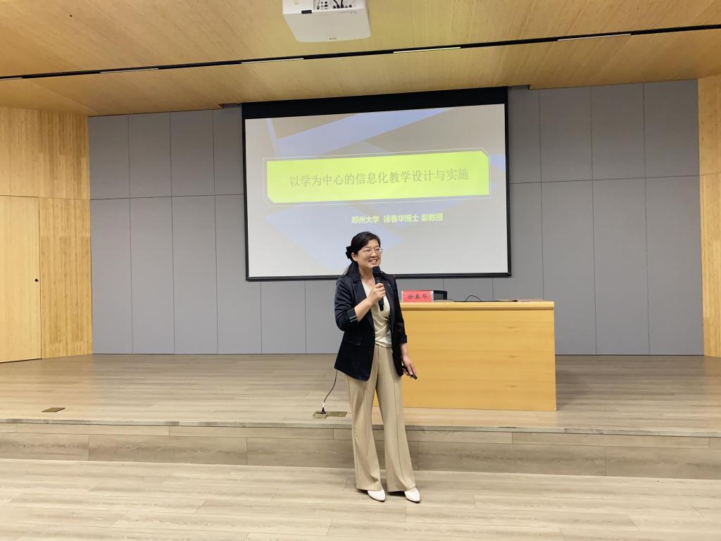 第二场,徐春华副教授作了题为《以学为中心的信息化教学设计与实施》的报告,围绕以“学”为中心这个基本点,从课堂改革背景下教师的数字化转型、信息化教学设计的要点和步骤、信息化教学的实践方法等方面,分享了信息化教学的体会。徐教授的报告深入浅出,内容丰富,既注重理论上的解读,又注重结合实际分析,对参训学员教学信息化能力的提升和转型具有很强的指导作用,使其对教学改革有了新的思考。