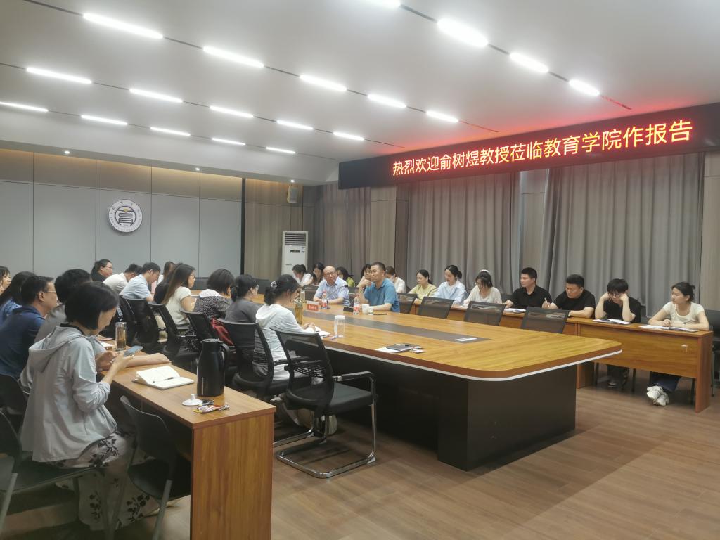 5月31日下午,教育学院邀请西北师范大学博士生导师俞树煜教授在社科楼109会议室作了题为“研究论文的选题与写作”的学术报告。名誉院长、党总支书记刘颖方、副院长段海丹及班子成员和全体无授课任务的青年教师到场聆听了报告,报告由名誉院长主持。