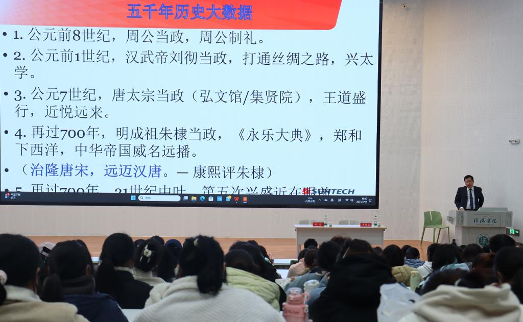 讲座伊始,武波教授巧妙地以中国古典文化为切入点,深入阐释了“翻译中国”的丰富内涵与核心内容。在讲解过程中,武波教授引经据典,通过大量生动且具体的案例,深入浅出地介绍了多种实用的翻译方法,以及在翻译国学经典时积累的宝贵实践经验。他特别指出,董仲舒的“天人合一”思想、朱熹构建的理学体系以及王阳明发起的“心学革命”,堪称中国文化史上的三大里程碑。这些伟大的思想不仅为中华文明奠定了深厚的哲学根基,更对后世产生了极为深远的影响,在翻译工作中需格外重视对其精准且恰当地呈现。