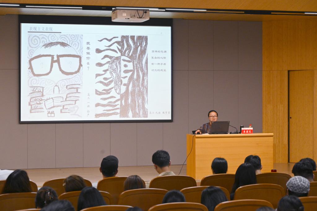 6月9日下午,应美术与设计学院邀请,中国美术家协会会员、北京市海淀区美术学科督学、海淀实验中学高级教师李露花老师在图书馆101报告厅作了题为《对美术教学的认识》的专题讲座。美术与设计学院相关负责人及200余名师生共同聆听了此次讲座。